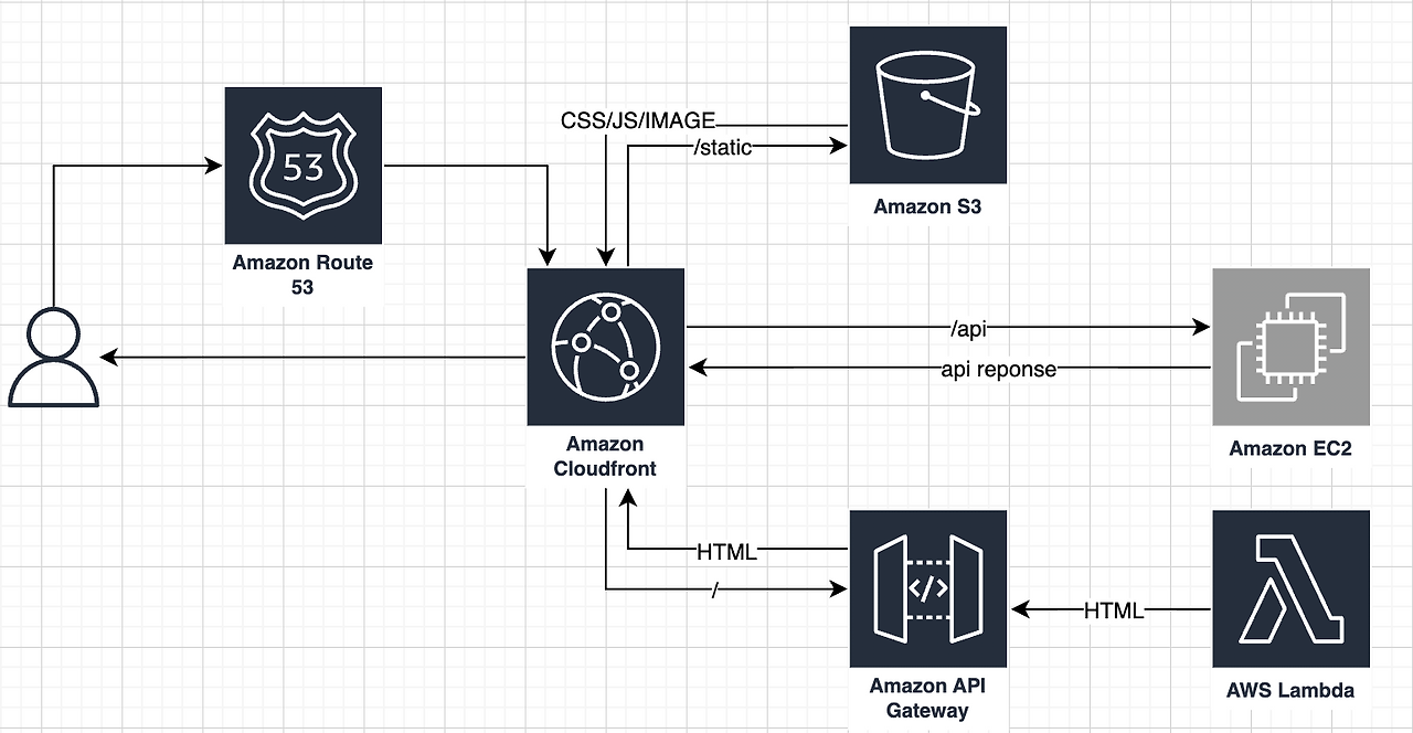 - AWS Lambda: 요청이 들어올 때만 실행되어 React 컴포넌트를 HTML로 렌더링하는 서버리스 엔진 역할을 수행한다.